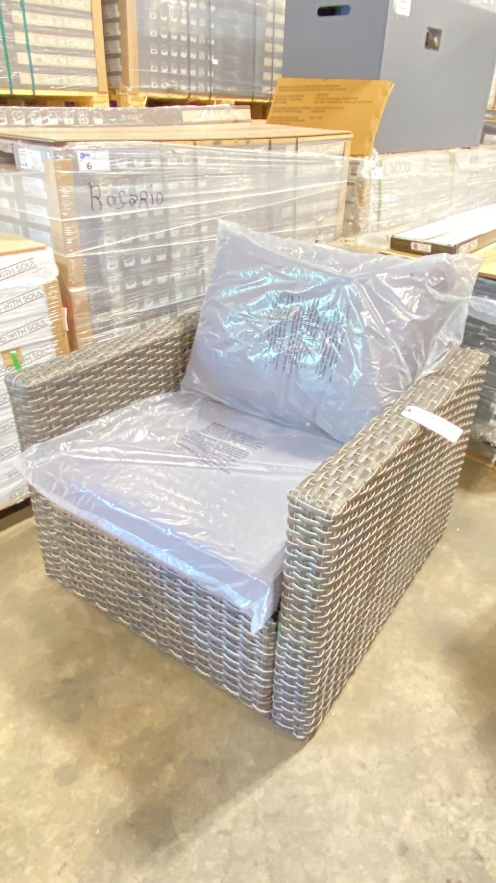 PATIOFLARE WHITNEY PF10017 GREY PLASTIC RATTAN OUTDOOR PATIO ARM CHAIR WITH GREY CUSHIONS *IN BOX*