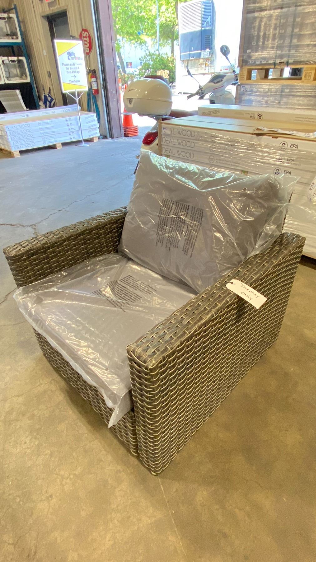 PATIOFLARE WHITNEY PF10017 GREY PLASTIC RATTAN OUTDOOR PATIO ARM CHAIR WITH GREY CUSHIONS *IN BOX*
