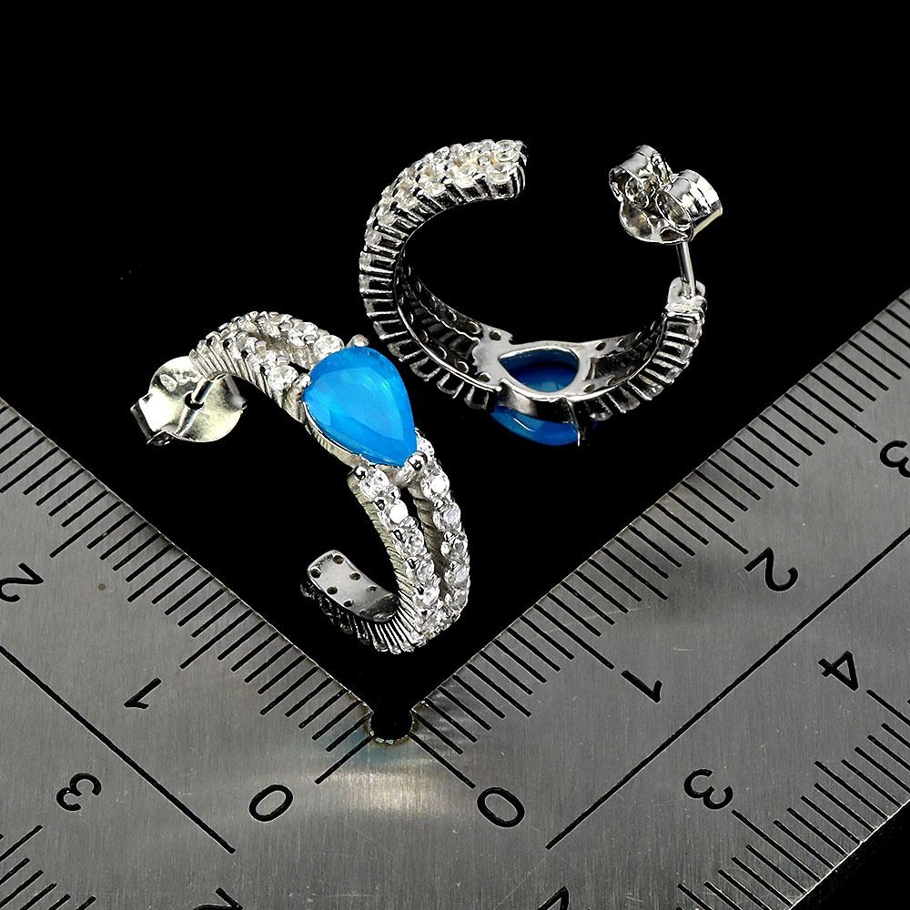 PEAR CUT BLUE OPAL EARRINGS IN 14K WHITE PLATED GOLD OVER 925 STERLING SILVER - APPRAISED REPLACEMENT VALUE