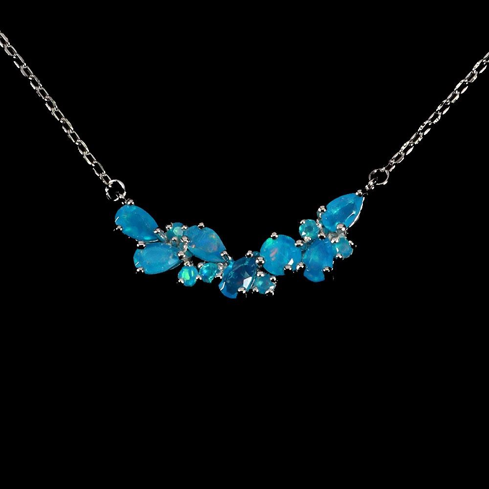 PEAR CUT BLUE OPAL NECKLACE IN 14K WHITE PLATED GOLD OVER 925 STERLING SILVER - 19 INCHES LONG - APPRAISED REPLACEMENT VALUE