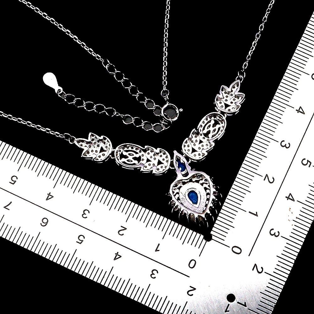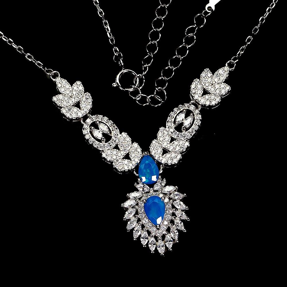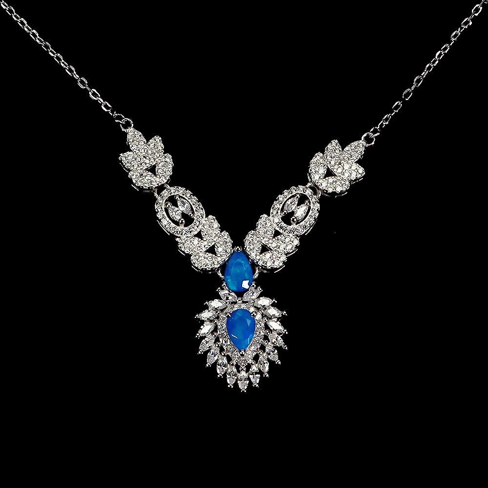 PEAR CUT BLUE OPAL NECKLACE IN 14K WHITE PLATED GOLD OVER 925 STERLING SILVER – 18 INCHES LONG - APPRAISED REPLACEMENT VALUE