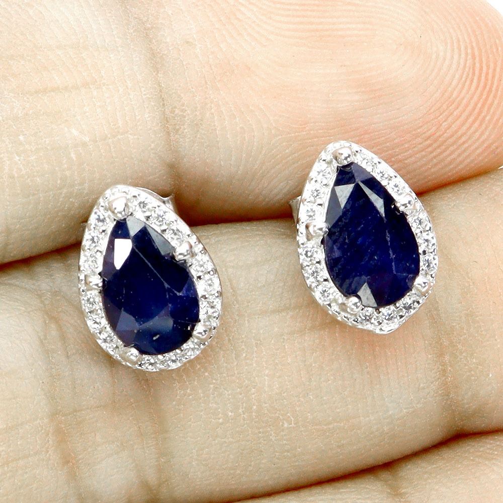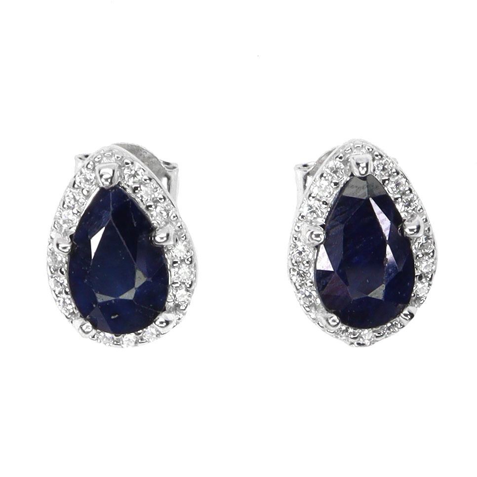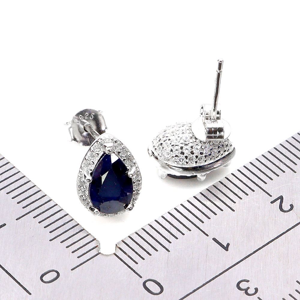 PEAR CUT BLUE SAPPHIRE EARRINGS IN 14K WHITE PLATED GOLD OVER 925 STERLING SILVER - APPRAISED REPLACEMENT VALUE