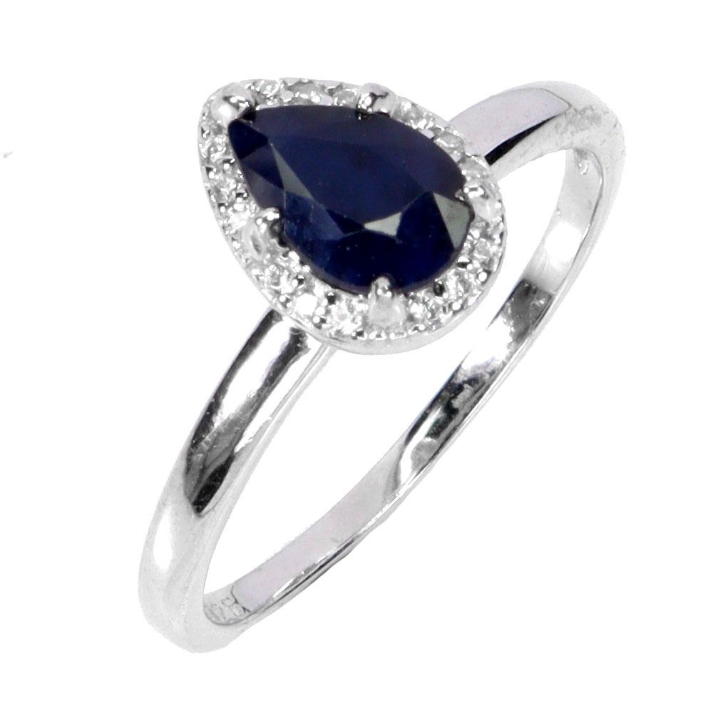 PEAR CUT BLUE SAPPHIRE RING IN 14K WHITE PLATED GOLD OVER 925 STERLING SILVER - SIZE 7 - APPRAISED REPLACEMENT VALUE