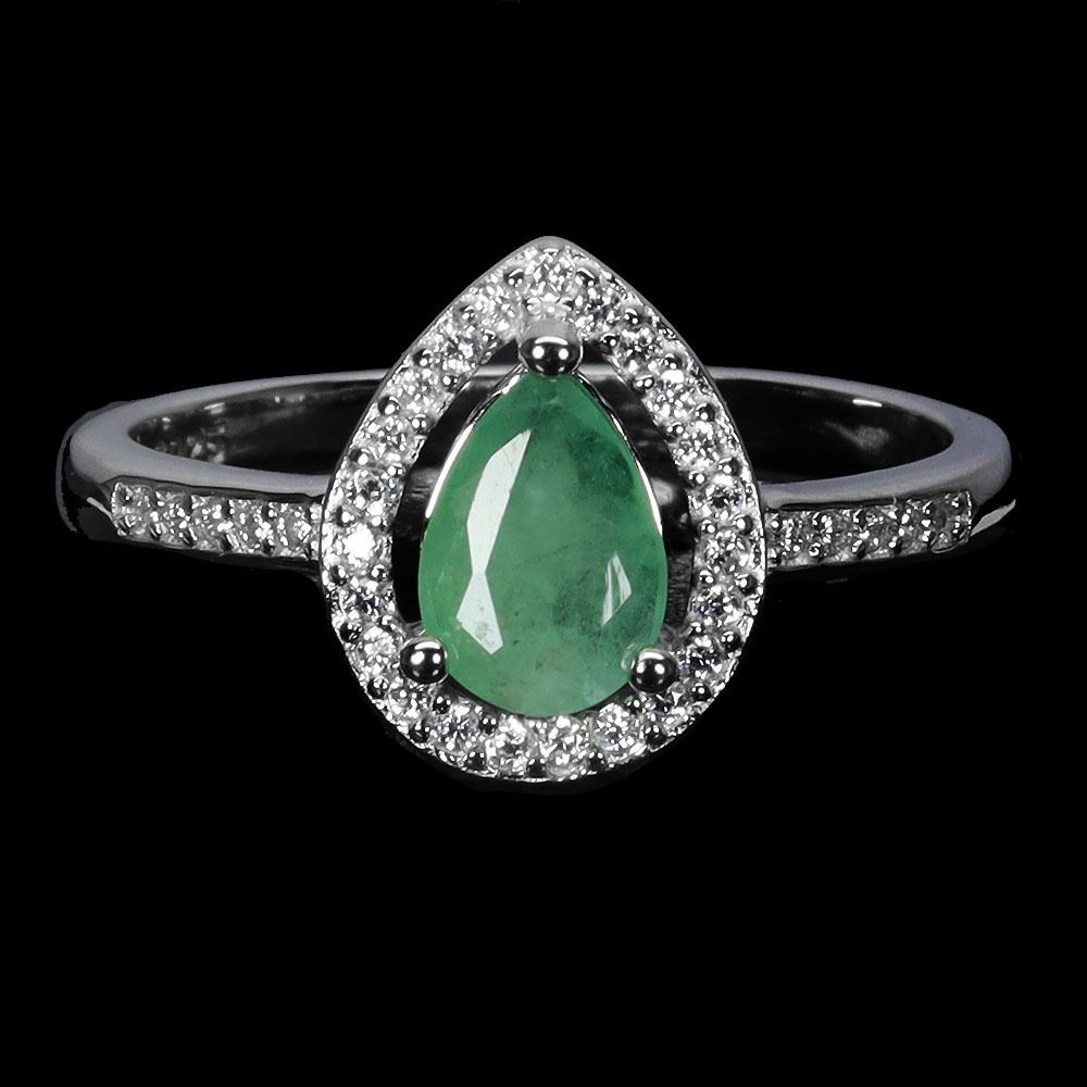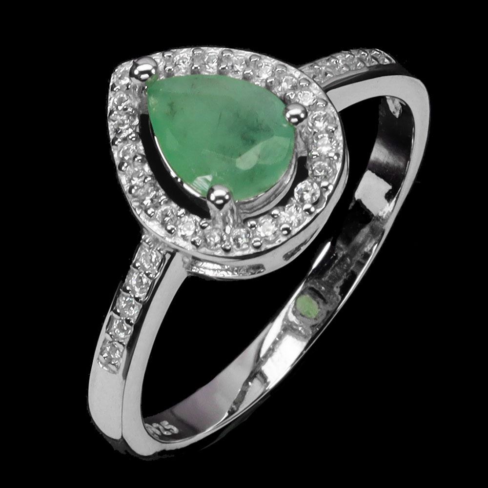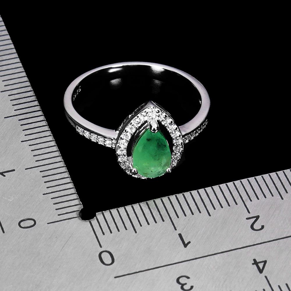 PEAR CUT EMERALD RING IN 14K WHITE PLATED GOLD OVER 925 STERLING SILVER - SIZE 7 - APPRAISED REPLACEMENT VALUE