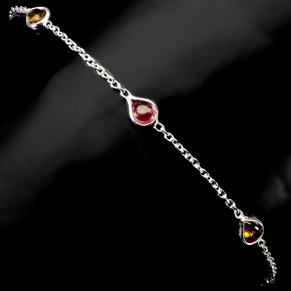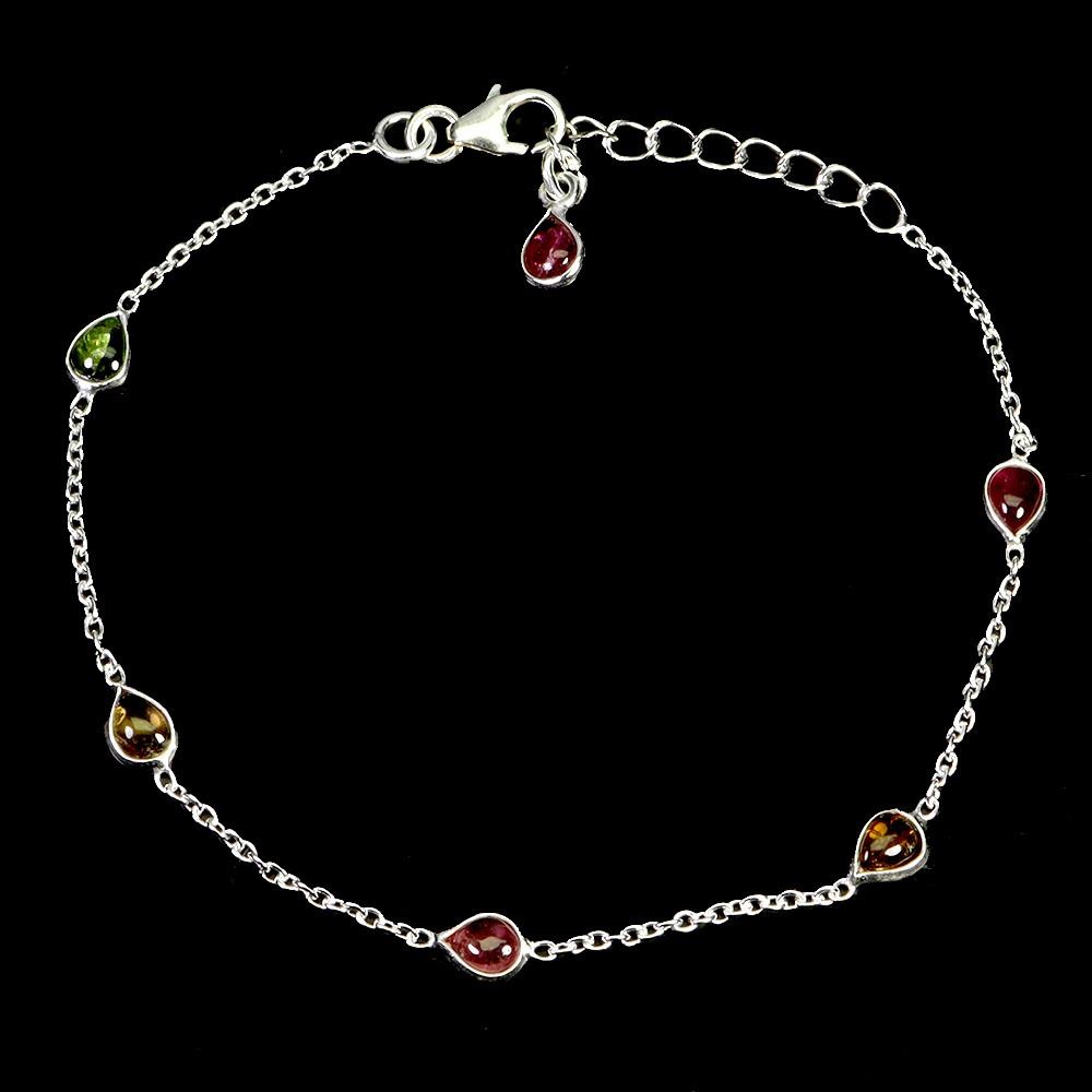 PEAR CUT RED TOURMALINE BRACELET IN 14K WHITE PLATED GOLD OVER 925 STERLING SILVER - APPRAISED REPLACEMENT VALUE