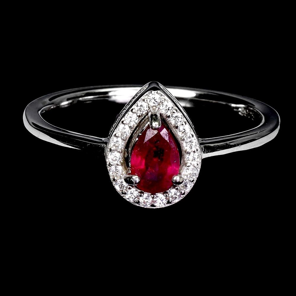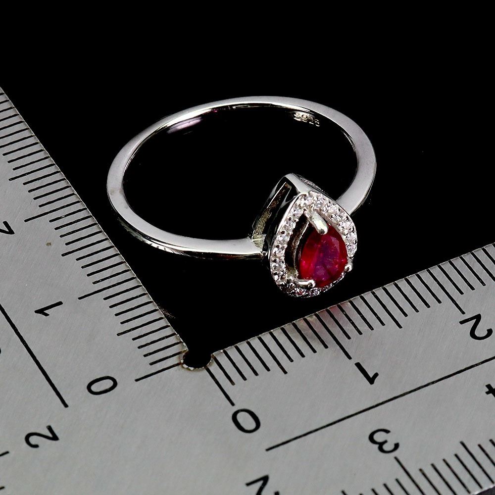 PEAR CUT RUBY RING IN 14K WHITE PLATED GOLD OVER 925 STERLING SILVER - SIZE 8.5 - APPRAISED REPLACEMENT VALUE