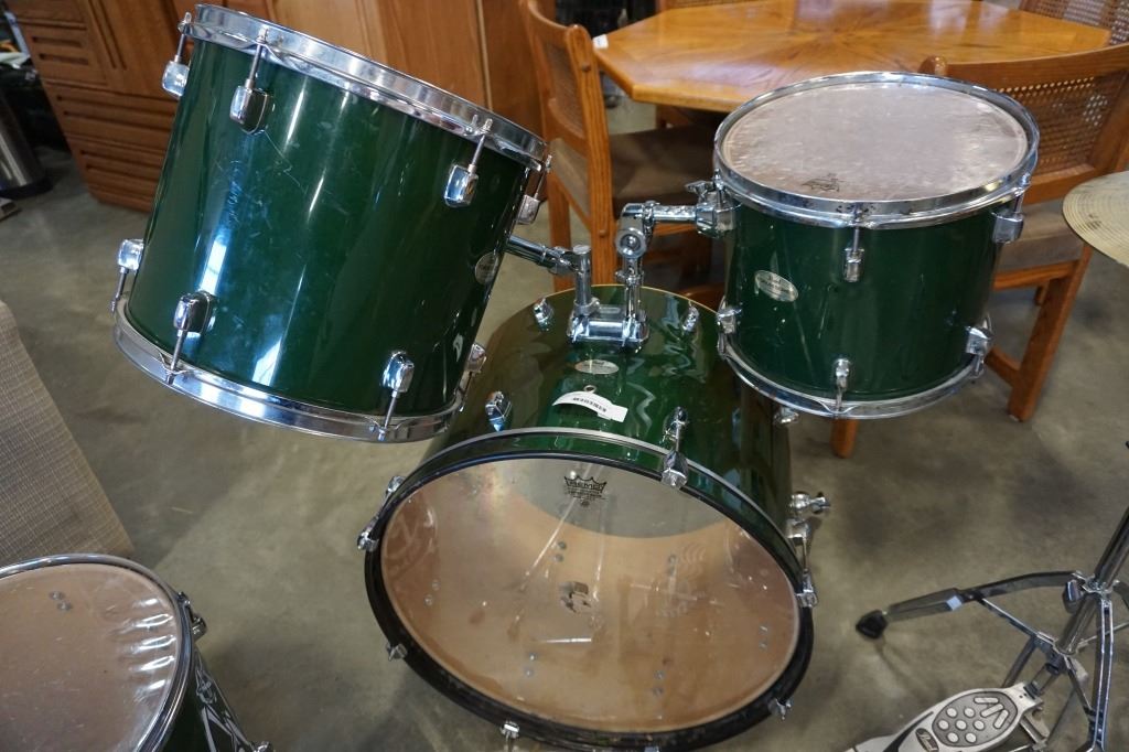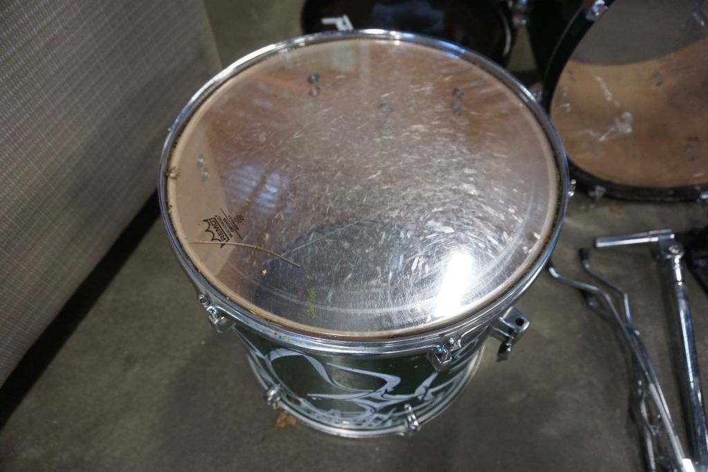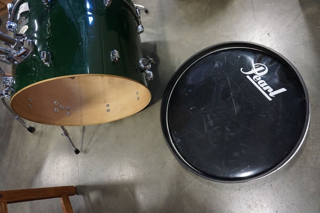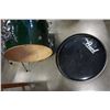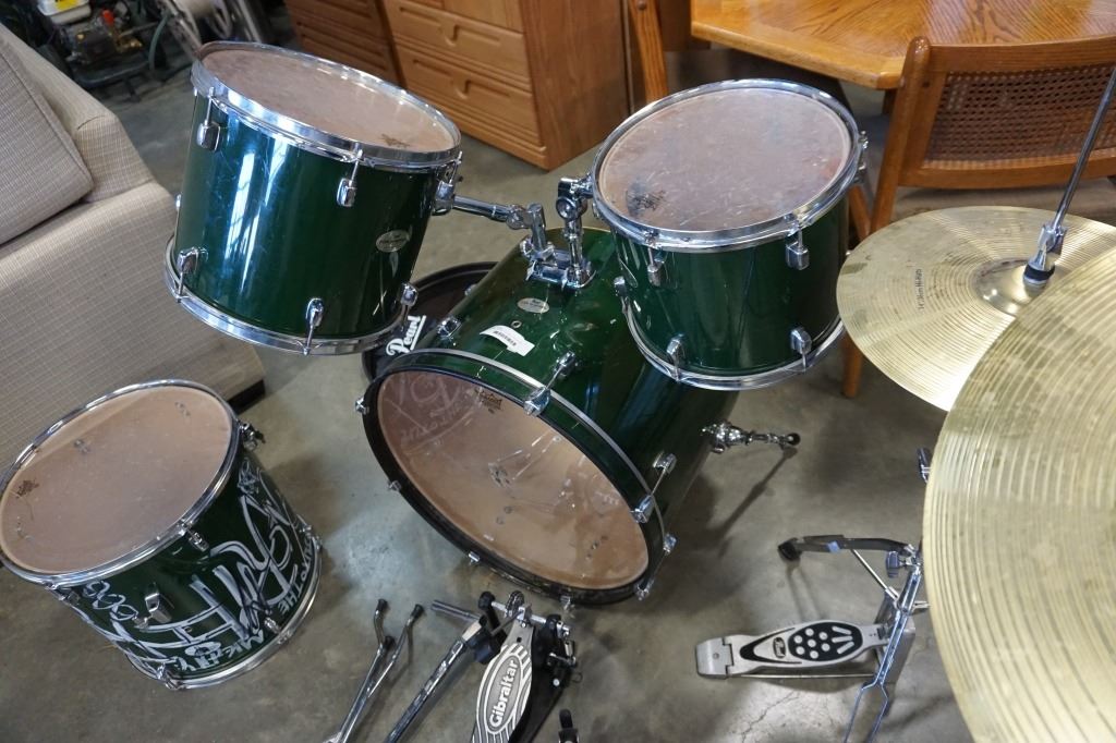 PEARL DRUM KIT, 3 TOMS, BASE DRUM, SNARE, HI-HAT WITH SOLAR SABIAN SYMBOL AND SOLAR SABIAN CYMBOL ON