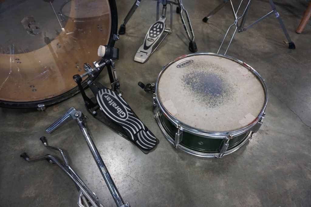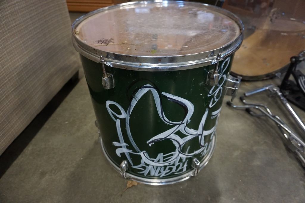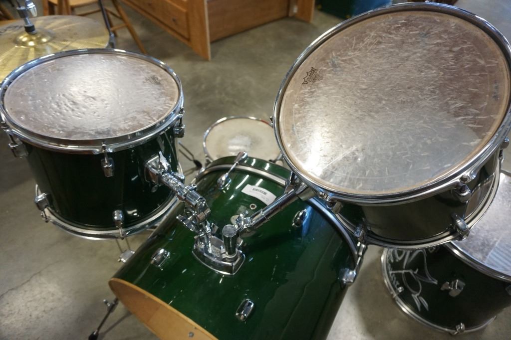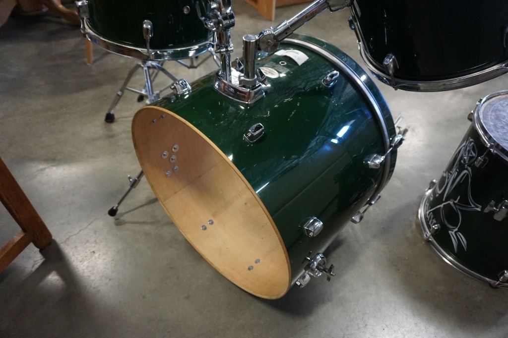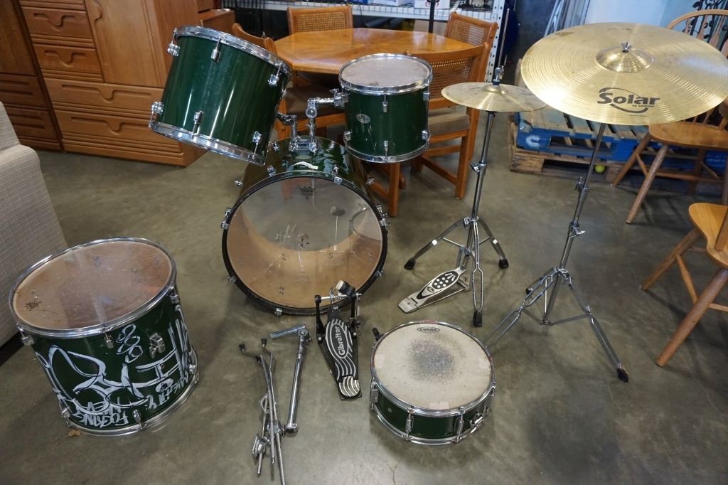 PEARL DRUM KIT, 3 TOMS, BASE DRUM, SNARE, HI-HAT WITH SOLAR SABIAN SYMBOL AND SOLAR SABIAN CYMBOL ON