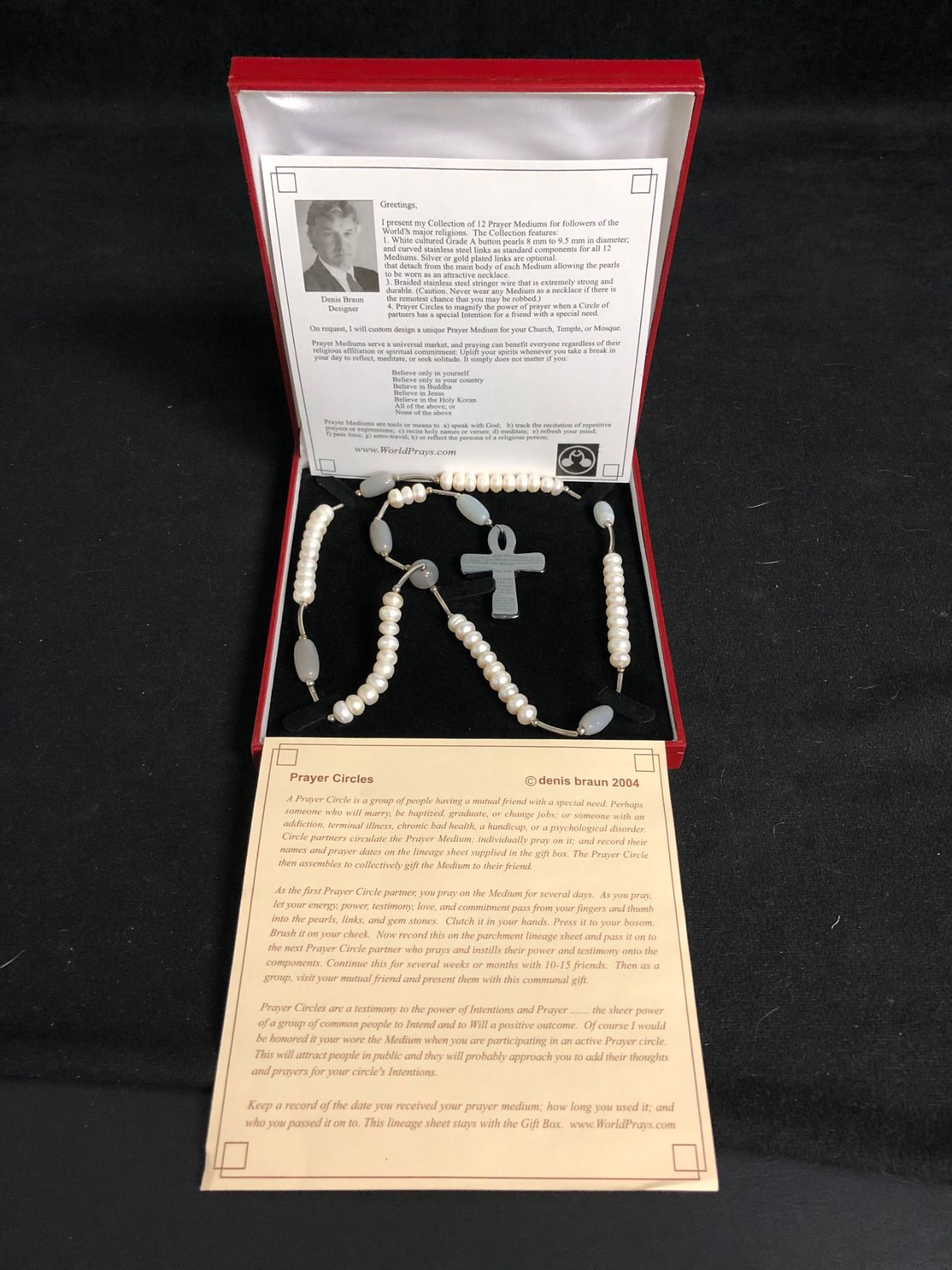 PEARL PRAYER NECKLACE (PEARL/ CURVED STAINLESS STEEL LINKS)