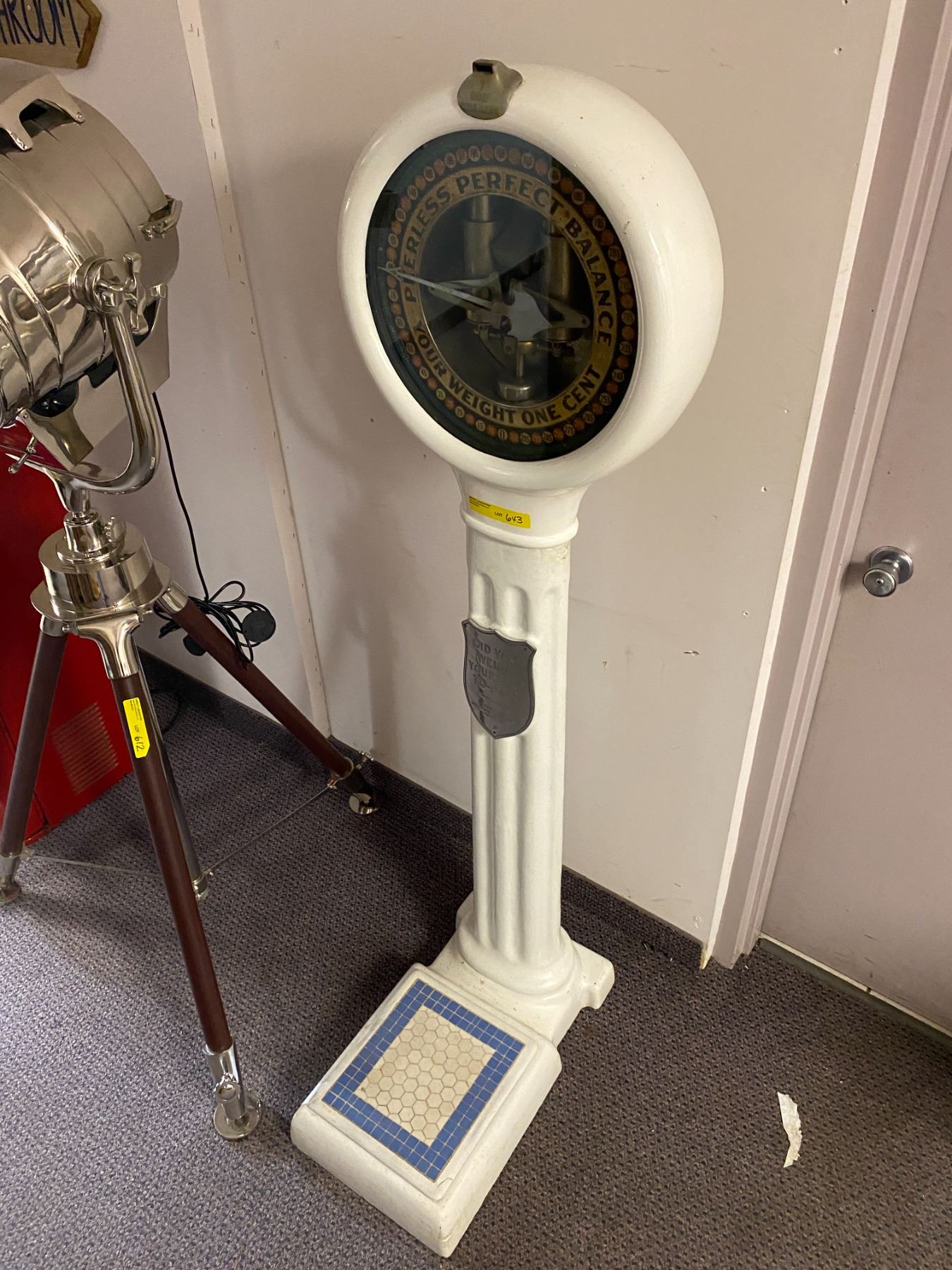 PEERLESS Perfect Balance Step On Scale - One Cent - Heavy Piece but beautiful - Antique - approx. 18 1/2in x 24in x 69in tall