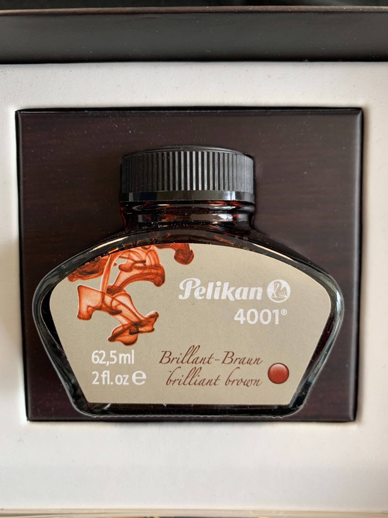 PELIKAN BRILLIANT-BROWN INK IN BOX WITH PEN POUCH