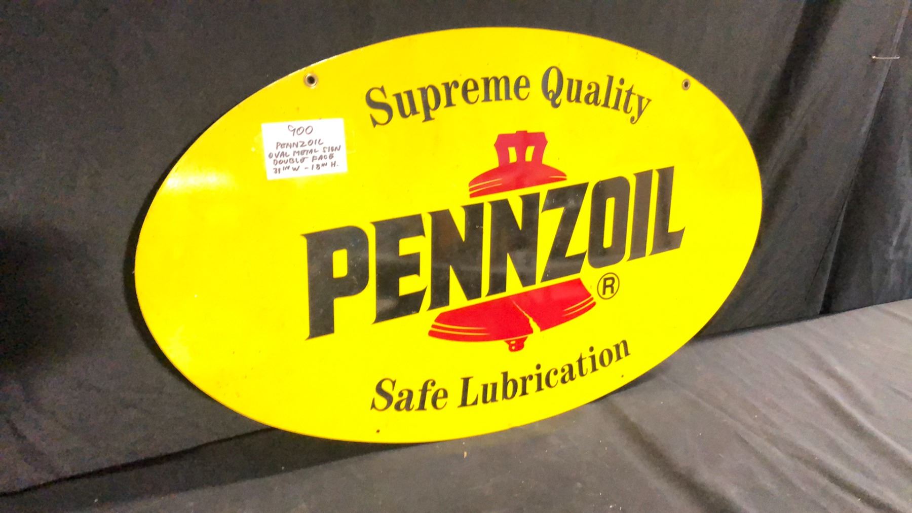 PENNZOIL OVAL DOUBLE-SIDED METAL SIGN W31" X H18"