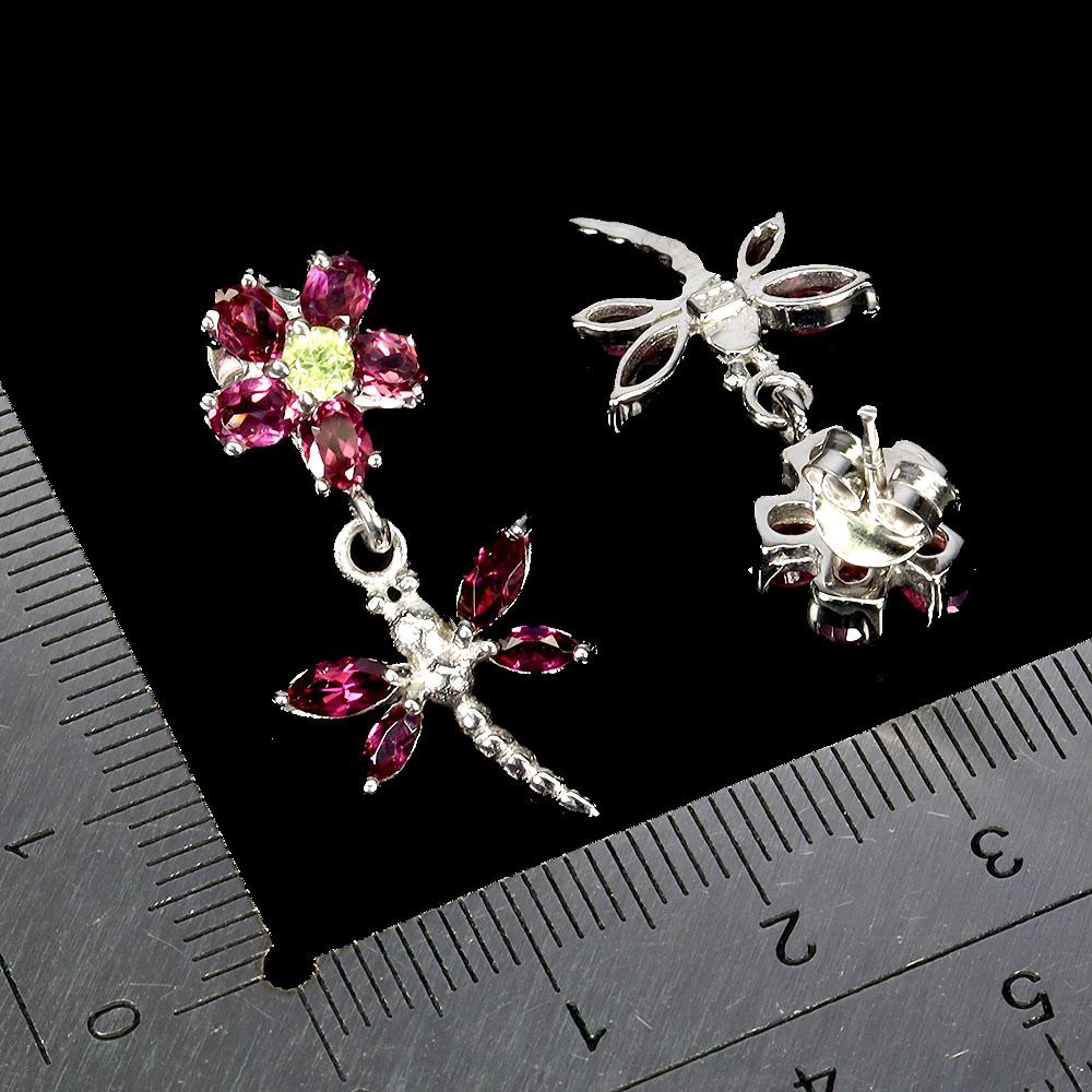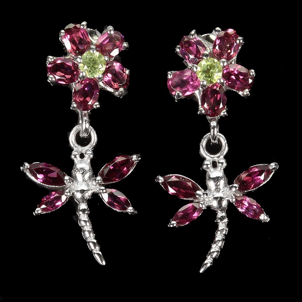 PERIDOT AND RHODOLITE GARNET EARRINGS IN 14K WHITE PLATED GOLD OVER 925 STERLING SILVER - APPRAISED REPLACEMENT VALUE