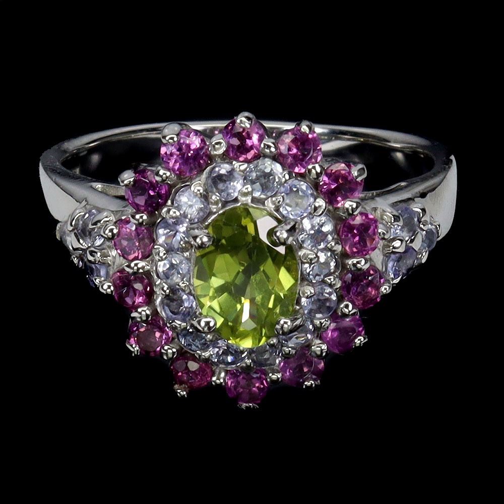 PERIDOT, GARNET and TANZANITE Ring in 14k Gold Plated 925 Sterling Silver – Size 9 – Appraised Replacement Value CAD 675