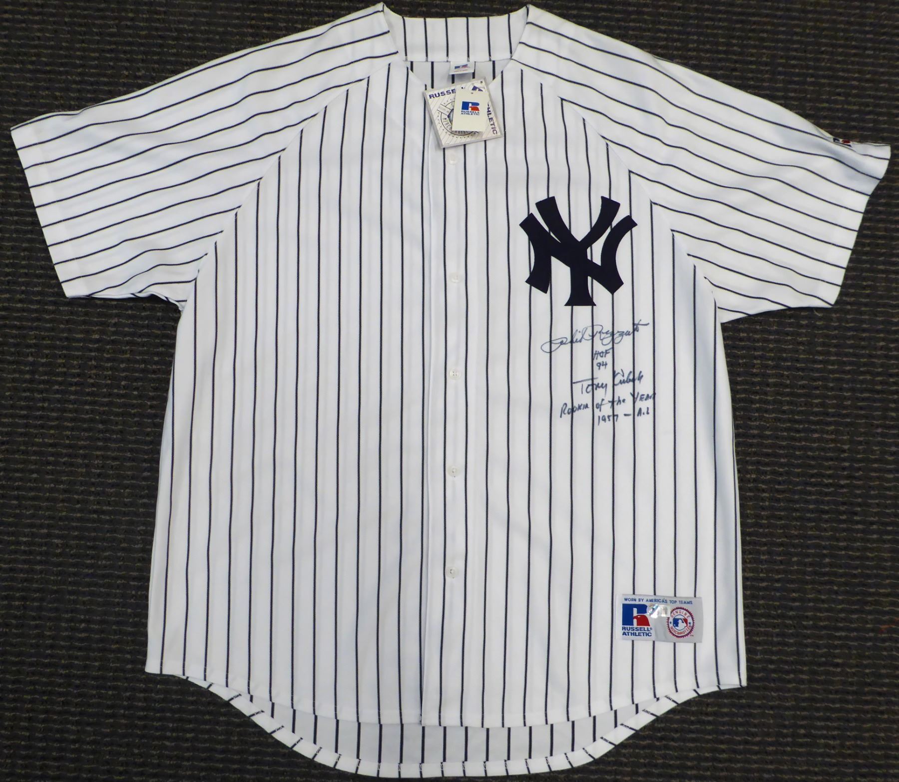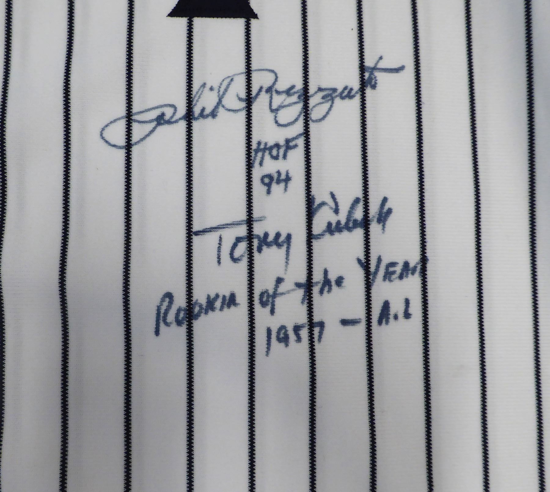 PHIL RIZUTTO AND TONY KUBEK SIGNED NY YANKEES JERSEY WITH INSCRIPTIONS (BECKETT COA)