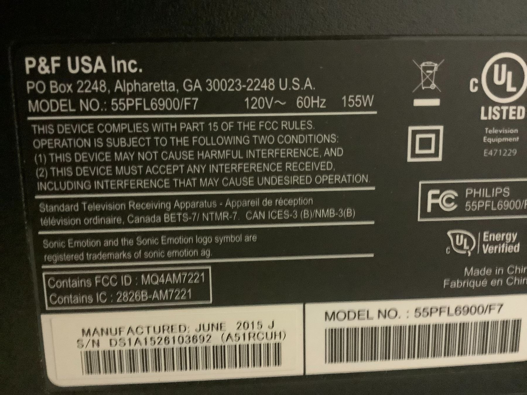 PHILIPS 55" TV MODEL 55PFL6900/F7 (MISSING REMOTE, AND STAND)