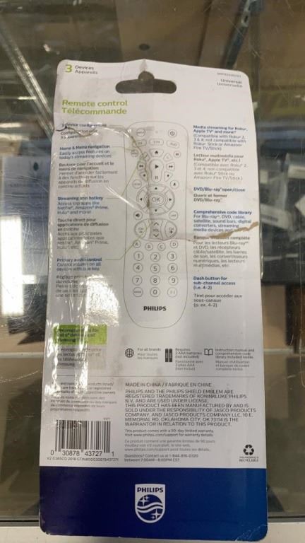 PHILIPS CONTOUR HD ANTENNA 4K READY WITH 3 UNIVERSAL REMOTES, 8 IN 1, 4 IN 1 AND 3 IN 1
