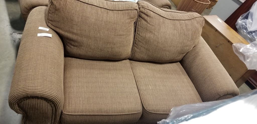 PILLOW BACK ROLLED ARM STUDDED LOVESEAT