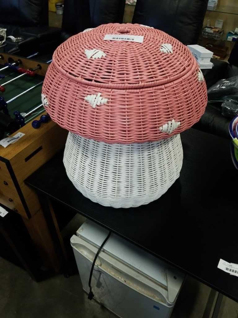 PINK AND WHITE WICKER MUSHROOM HAMPER