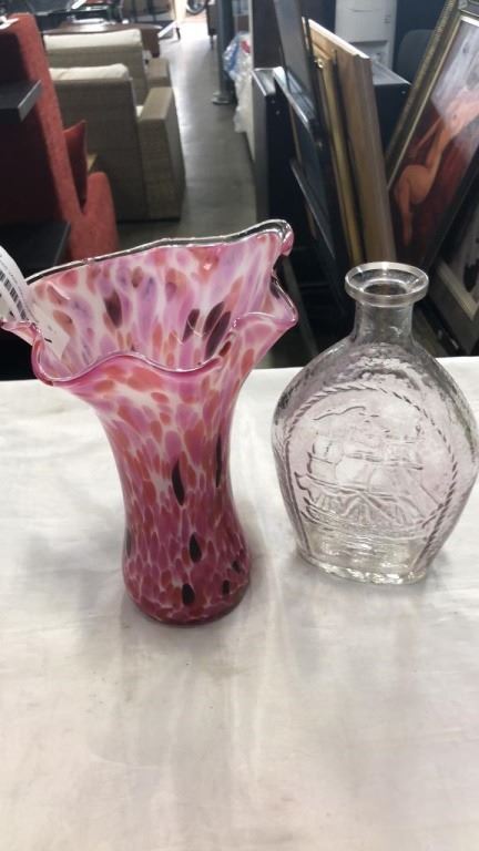 PINK ART GLASS VASE AND COURAGE GLASS BOTTLE