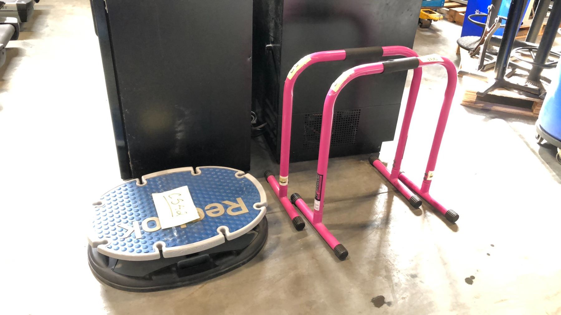 PINK METAL EQUALIZER EXERCISE BARS WITH REEBOK BALANCE BOARD *LOCATED AT 101-11539 136 ST SURREY*