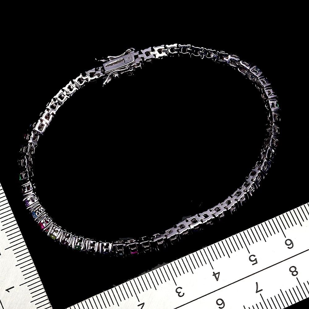 PINK TOPAZ, AMETHYST, GREEN TOPAZ, MOZAMBIQUE GARNET, PERIDOT, RHODOLITE GARNET, SKY BLUE TOPAZ BRACELET IN 14K WHITE PLATED GOLD OVER 925 STERLING SILVER - 7 INCHES LONG - APPRAISED REPLACEMENT VALUE