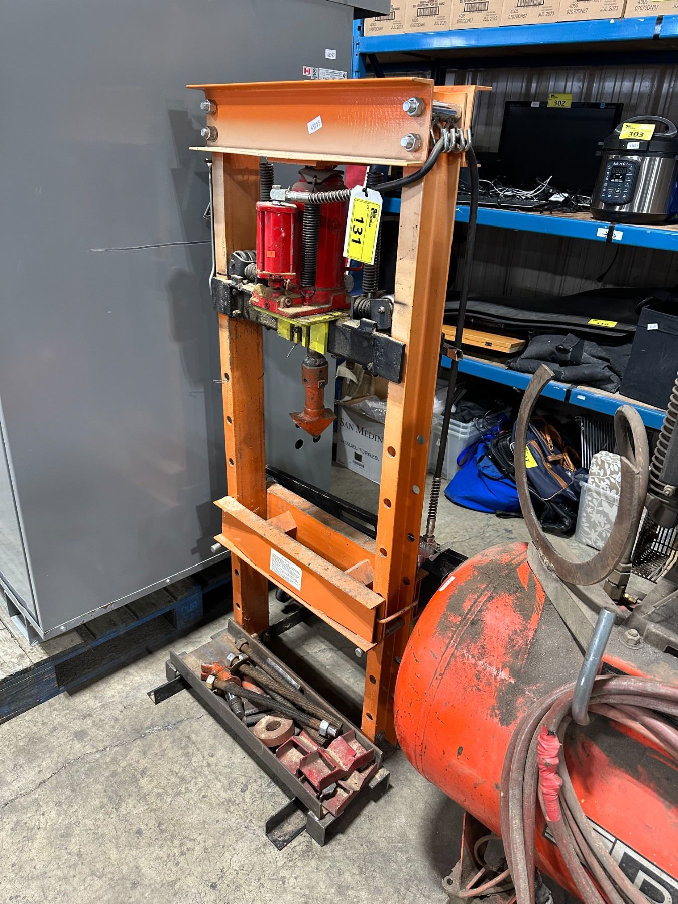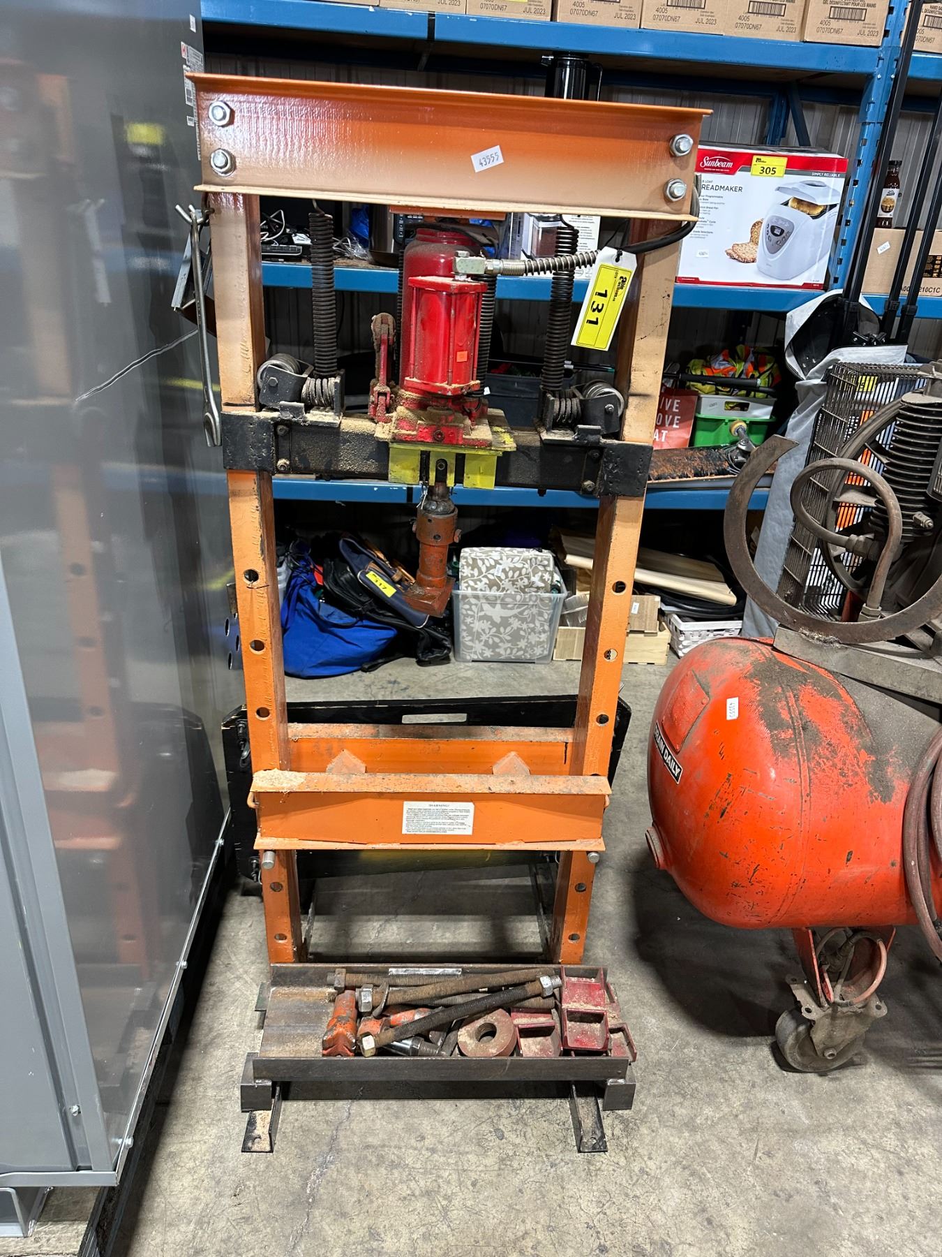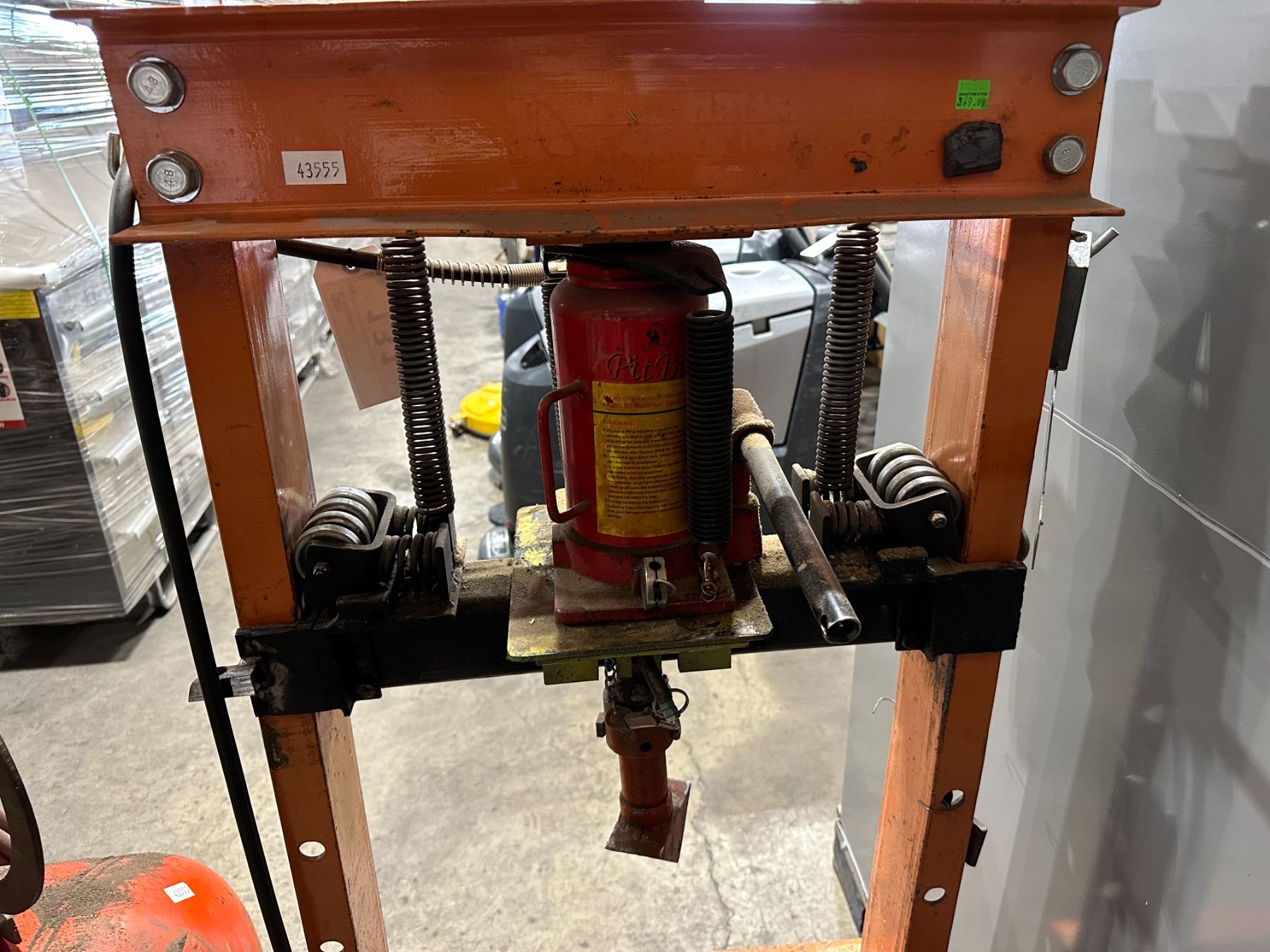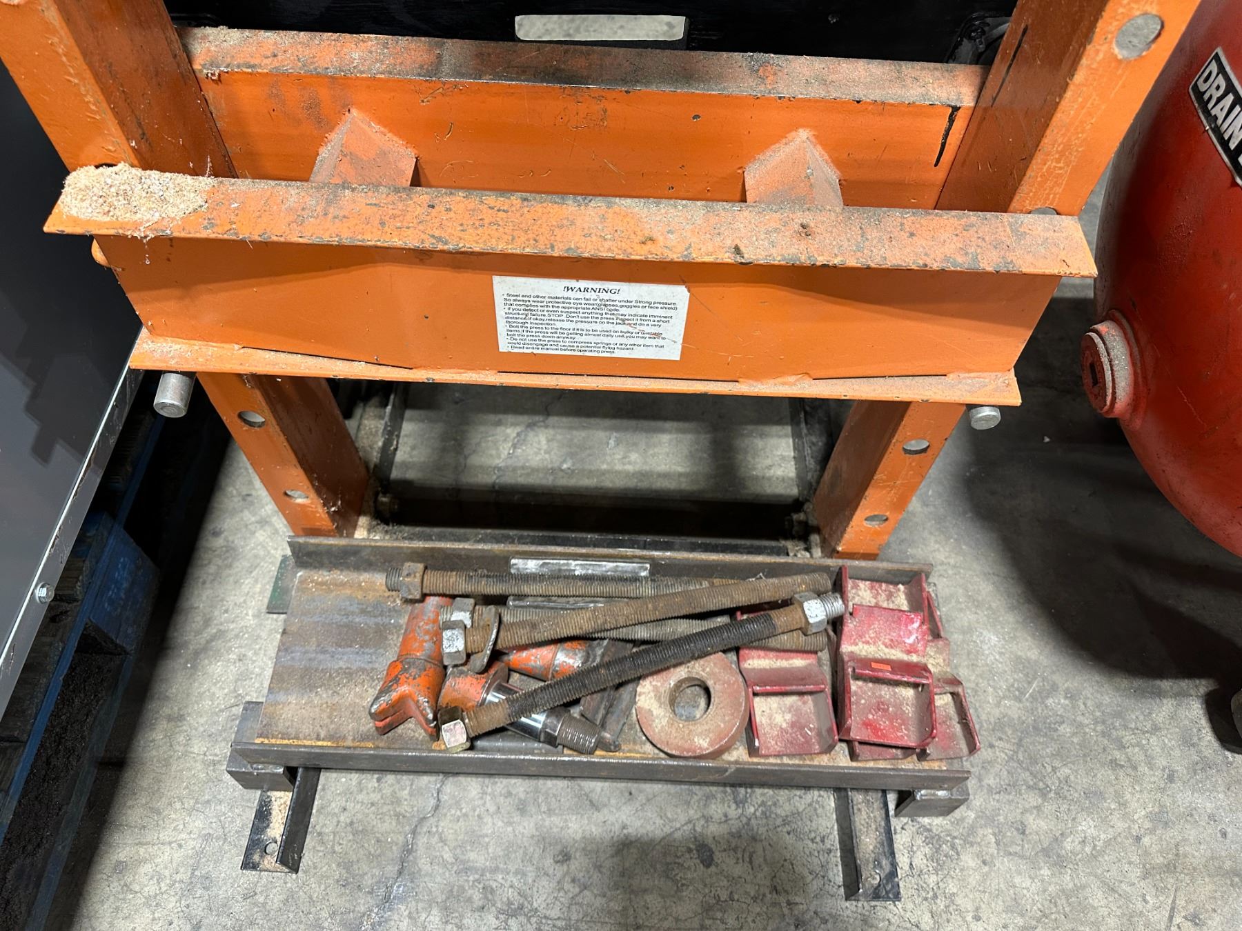 PIT BULL ORANGE 20 TON PNEUMATIC / HYDRAULIC SHOP PRESS WITH ASSORTED DIES & ATTACHMENTS