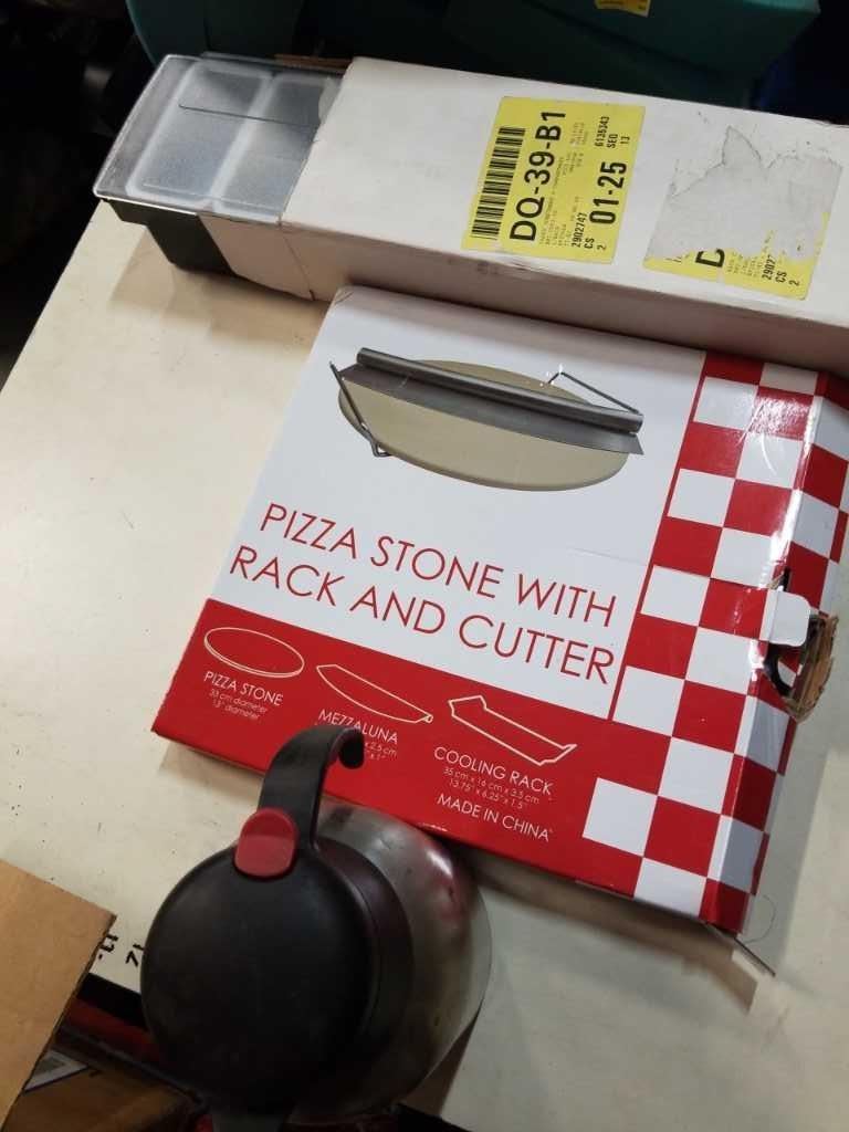 PIZZA STONE WITH RACK AND TRAY, CARAFFE AND SERVING TRAY