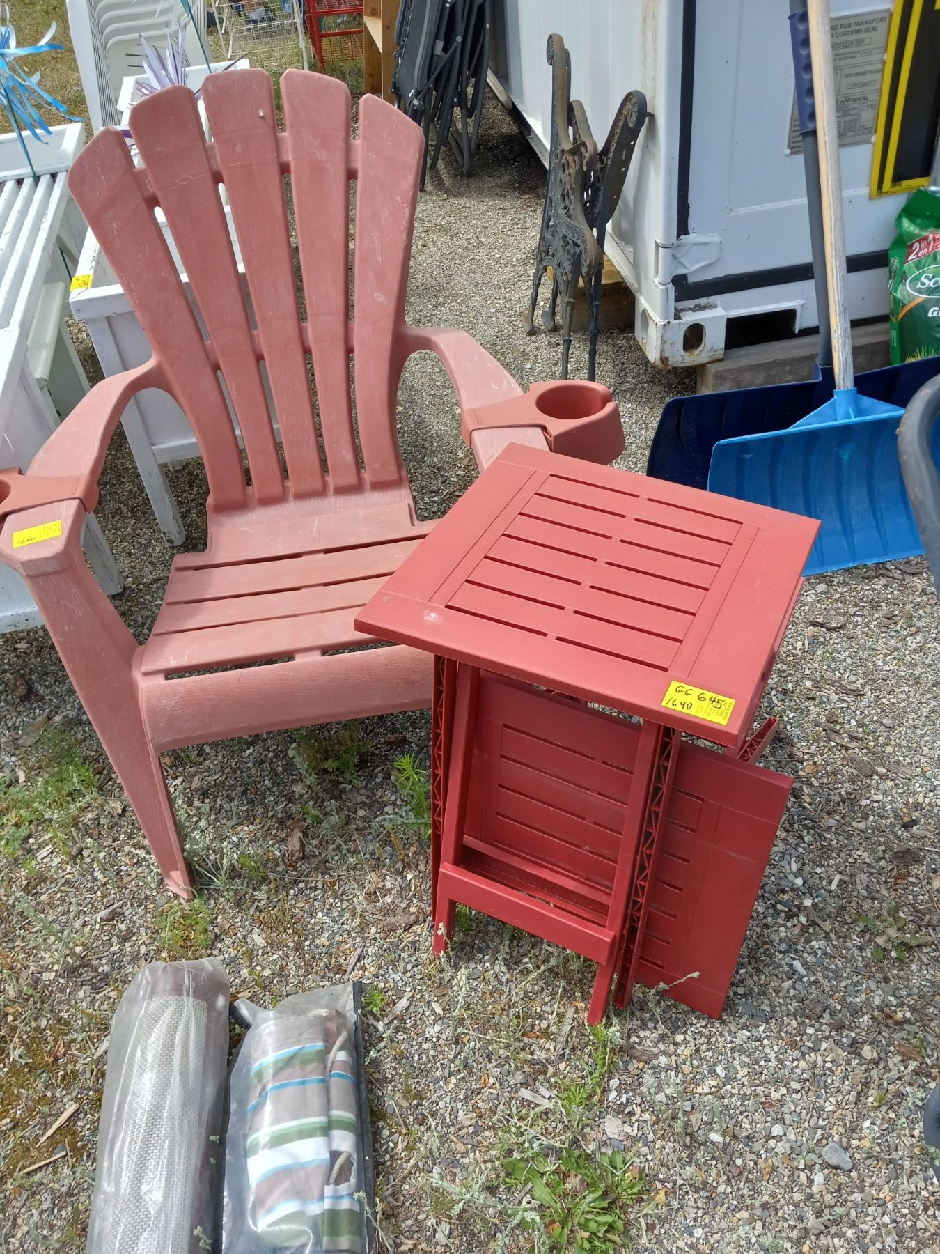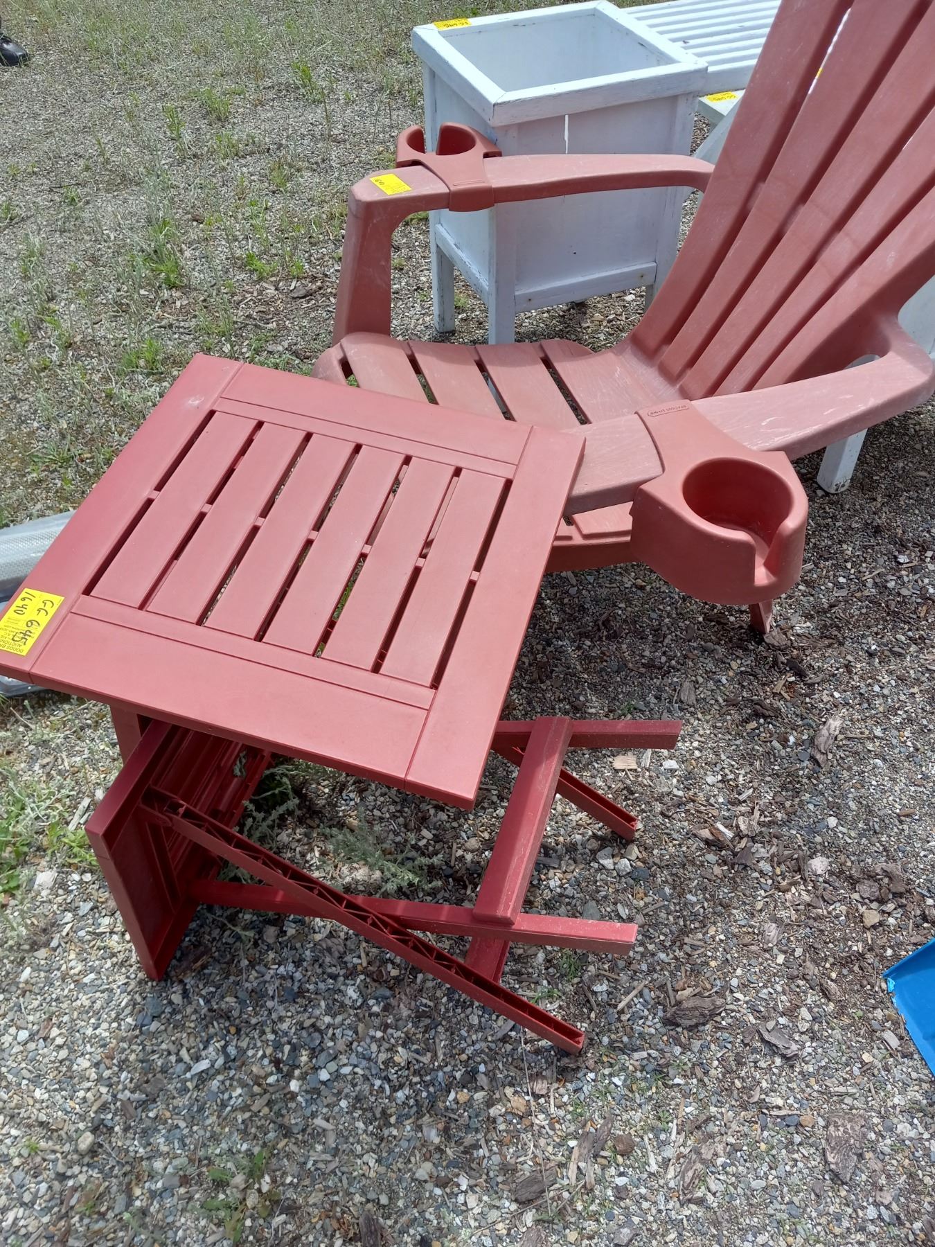 PLASTIC ADIRONDAK CHAIR W/2 TABLES