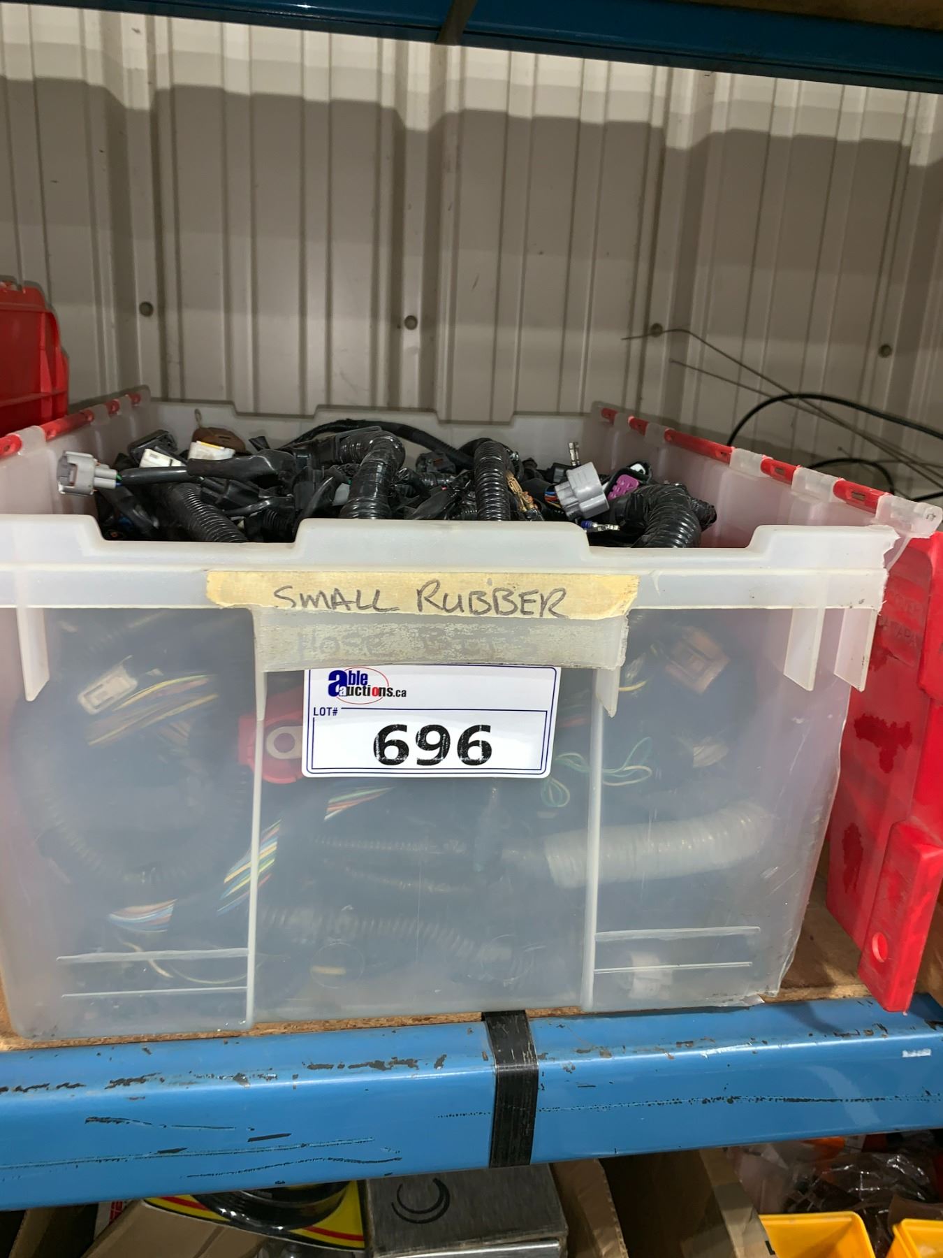 PLASTIC BIN OF ASSORTED RALLY VEHICLE ELECTRICAL HARNESSES ( BIN INCLUDED )