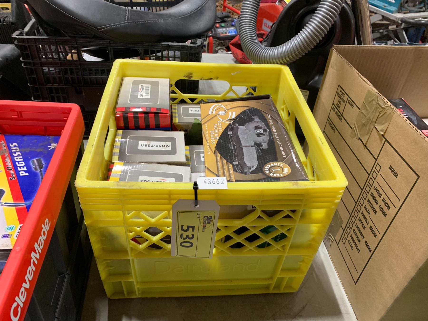 PLASTIC CRATE OF ASSORTED AUTOMOTIVE BRAKE PADS