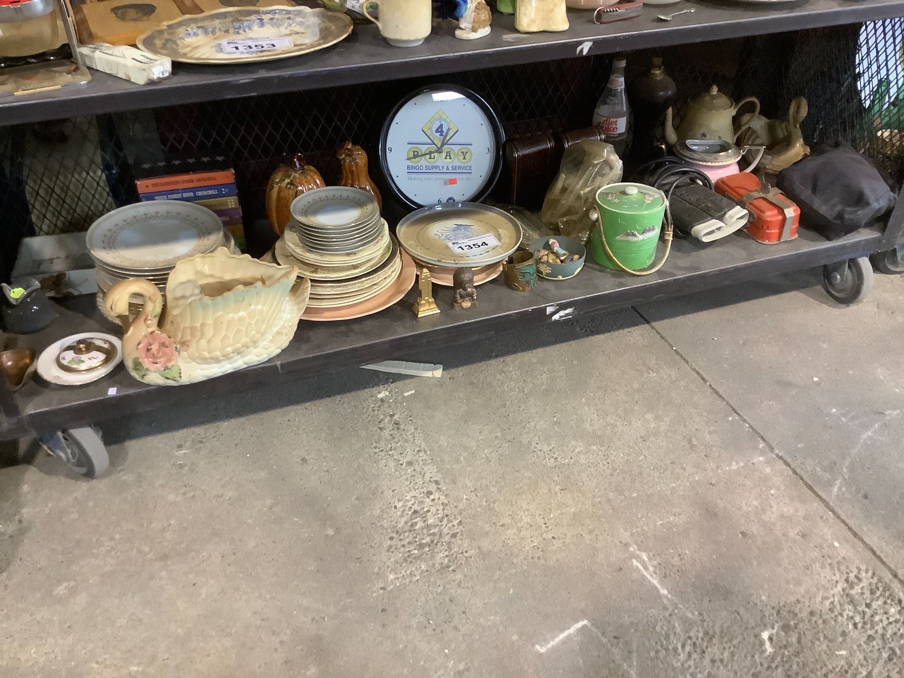 PLATES, ASSORTED GLASSWARE, WALL CLOCK, VHS TAPES, VINTAGE COKE BOTTLE, DECOR, ETC