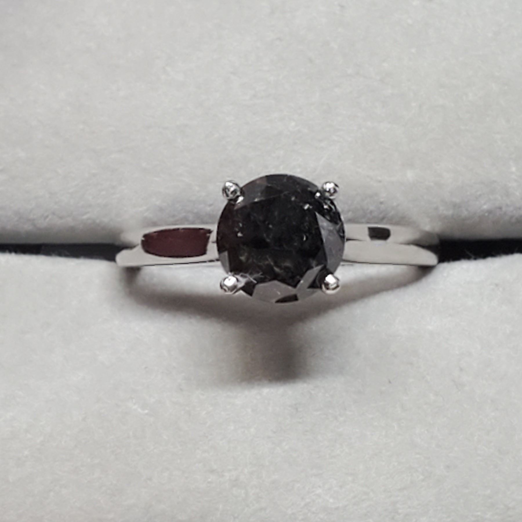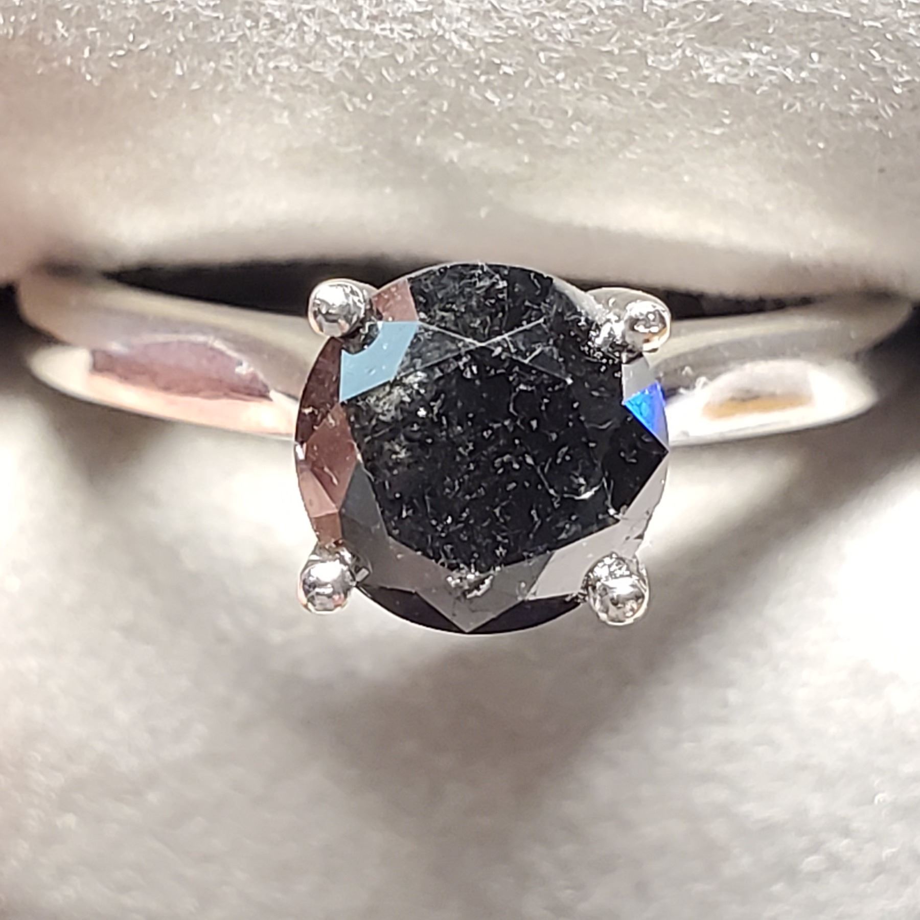 PLATINUM BLACK DIAMOND (1.5CT) 2 DIAMONDS (0.04CT) RING SIZE 5