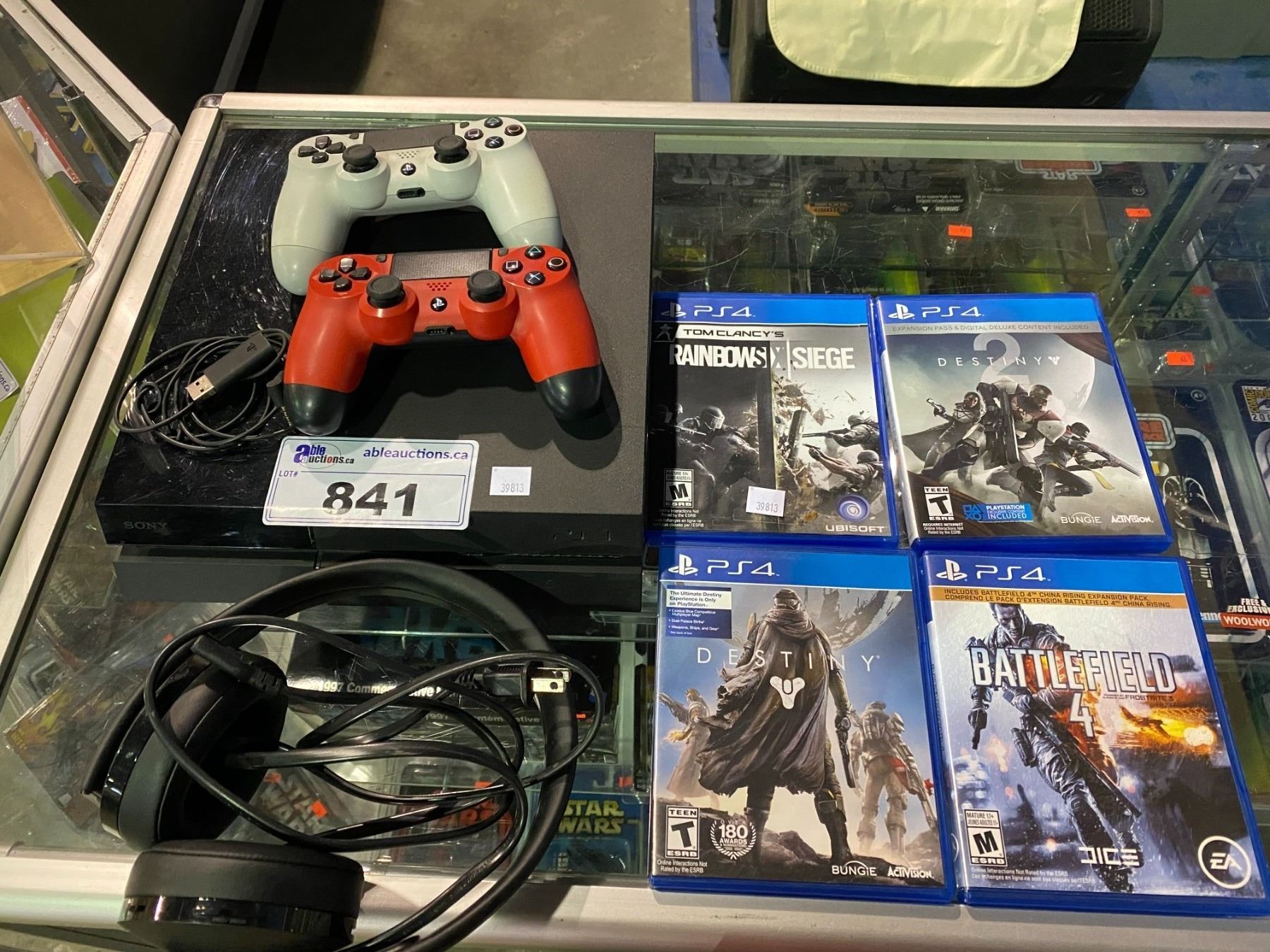 PLAYSTATION 4, 2 WIRELESS CONTROLLERS, WIRELESS HEADSET, 4 GAMES