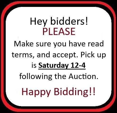 Please make sure to read and review all terms and conditions as well as the bidder increments, shipping information and all other relevant information prior to bidding. once you've read and understood all such items, sign on up and get bidding! We're excited to have you join us for our auction. Pick up is at #31 100 Kalamalka lake rd. 12-4 Saturday (Sunday if need* contact me First!!). Thanks for being here, have a good time. Happy bidding!!