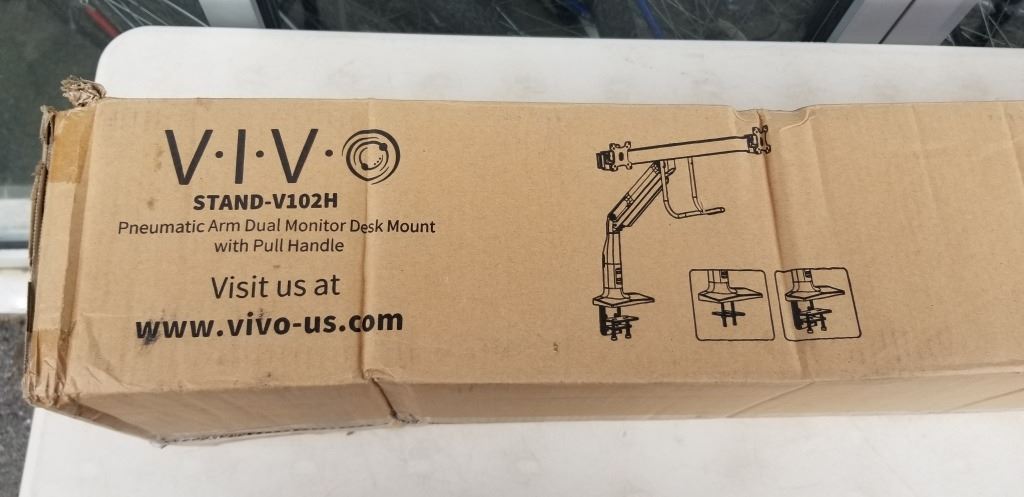 PNEUMATIC ARM DUAL MONITOR DESK MOUNT WITH PULL HANDLE