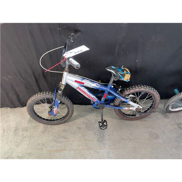 2 KIDS BIKES: BLUE MONGOOSE FRONT SUSPENSION MOUNTAIN BIKE & BLUE EMBER SINGLE SPEED BIKE