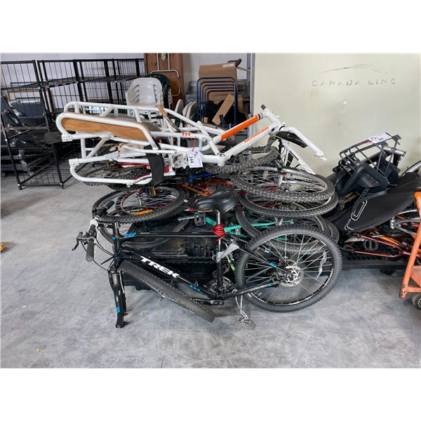 TREK BIKE FRAME, ELECTRIC BIKE FRAME & PALLET OF ASSORTED PARTS BIKES