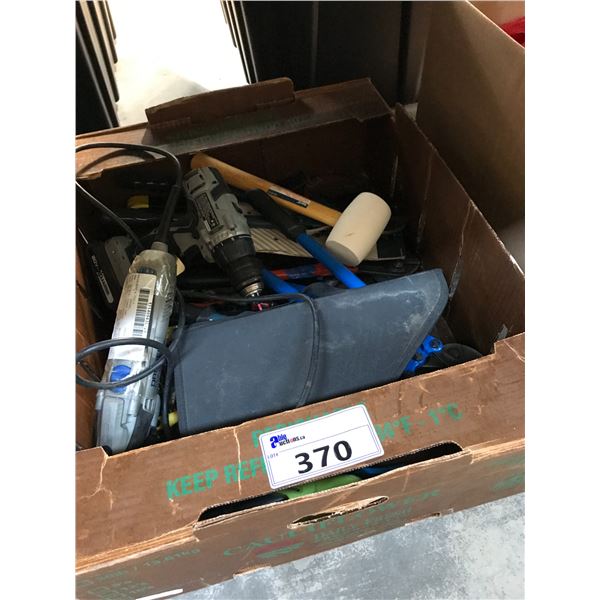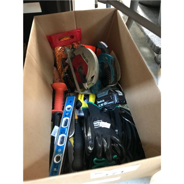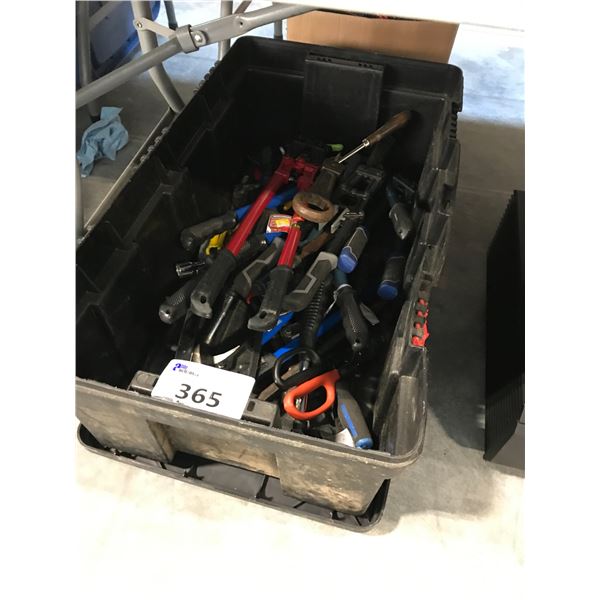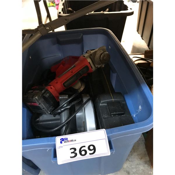BIN OF ASSORTED HAND AND POWER TOOLS