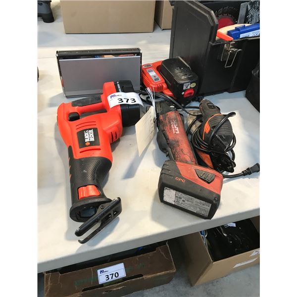 BLACK & DECKER 18V RECIPROCATING SAW WITH 2 BATTERIES AND CHARGER, 120V MOUSE SANDER, HILTI