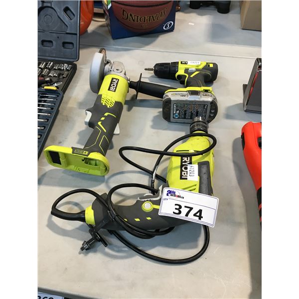 RYOBI 18V DRILL, RYOBI 18V GRINDER AND RYOBI 120V HAMMER DRILL
