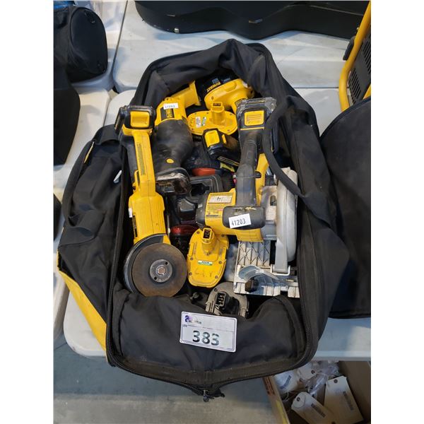 DEWALT TOOL BAG WITH ASSORTED DEWALT CORDLESS POWER TOOLS INCLUDING 6-1/2" CIRCULAR SAW,