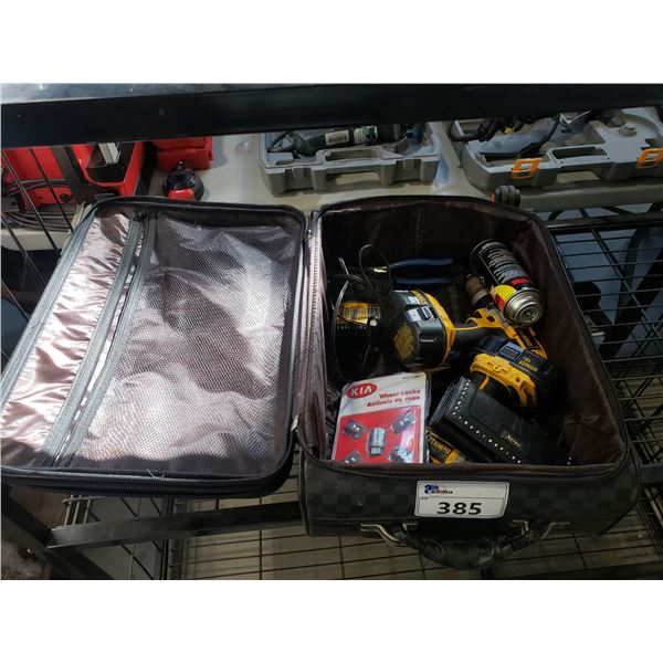 LOUIS VUITTON SUITCASE WITH DEWALT CORDLESS IMPACT DRIVER, CORDLESS DRILL 2 BATTERIES AND CHARGER