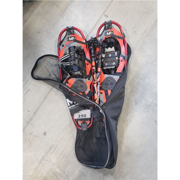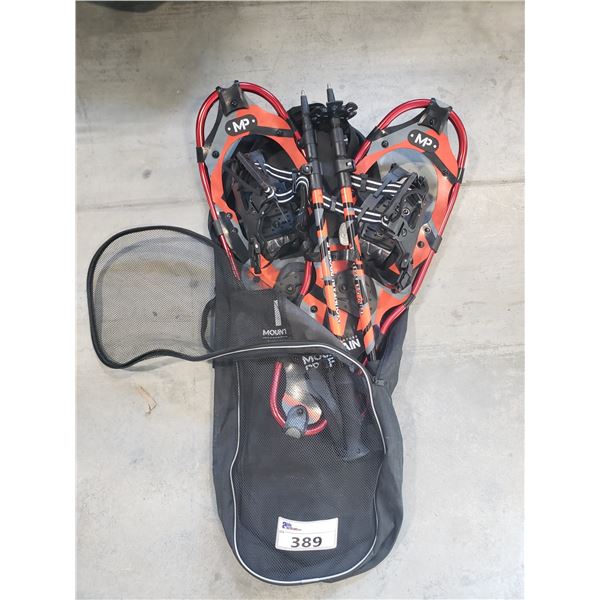 PAIR OF MOUNTAIN PROFILE SNOW SHOES AND POLES WITH CARRY BAG