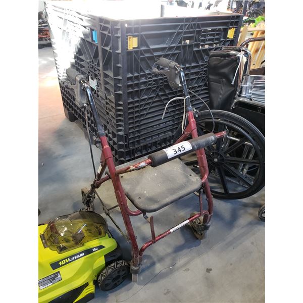 SUNBURST MEDICAL RED COLLAPSIBLE MOBILITY WALKER WITH SEAT