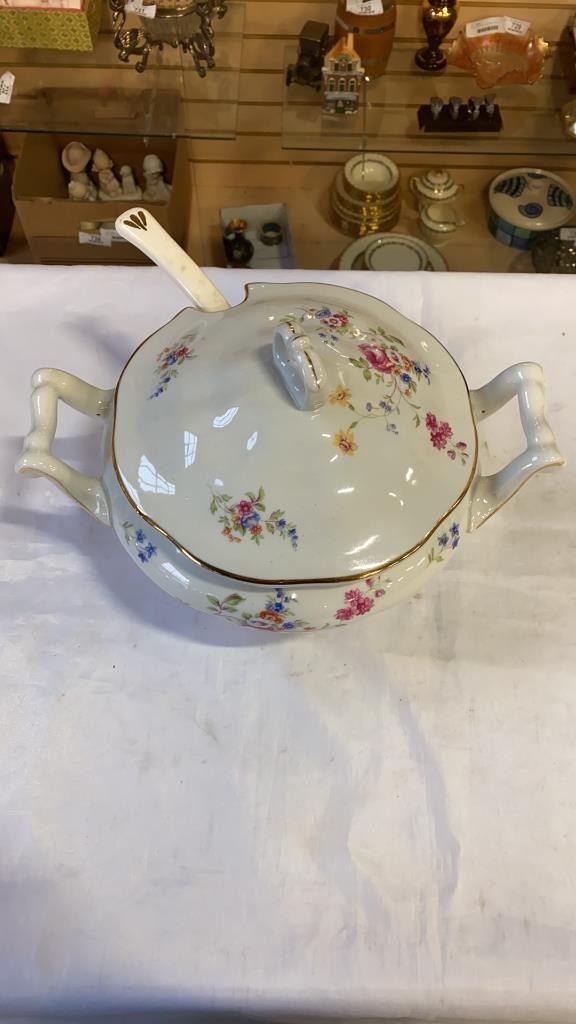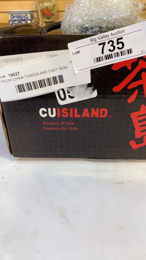 POLISH CHINA TUREEN AND CAST IRON TEAPOT