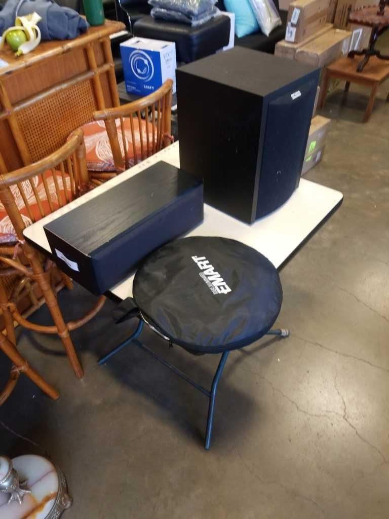 POLK AUDIO POWERED SUBWOOFER, YAMAHA CENTER SPEAKER WITH POPUP LIGHTSHADE
