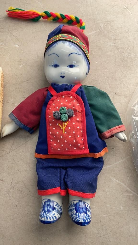 PORCELAIN DOLL PLATES AND EASTERN TRAY
