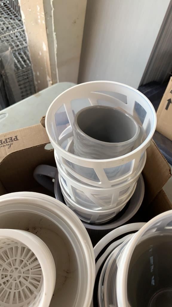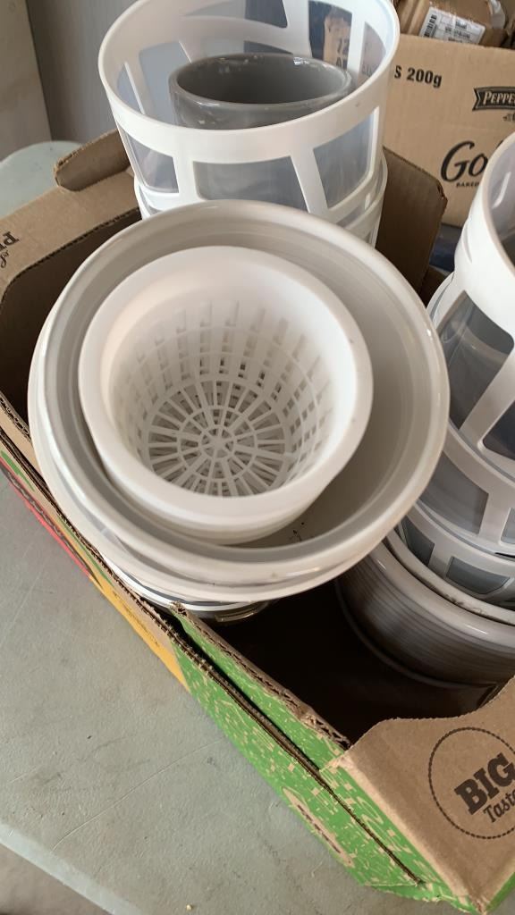 PORTABLE CHARCOAL BBQ WITH BOX OF FLOWER POTS