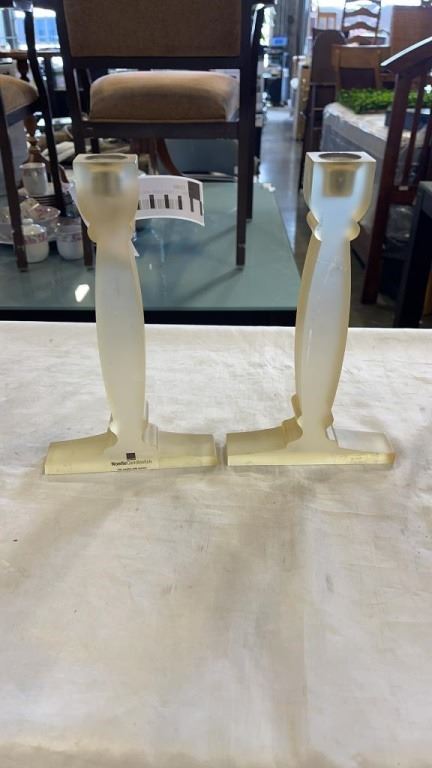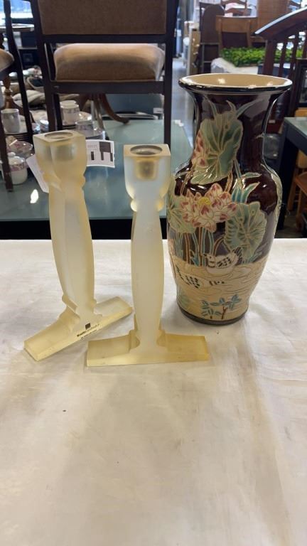 POTTERY 12 INCH VASE AND 2 CANDLESTICKS